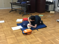 応急手当における心肺蘇生法についての研修会をしました。講師の先生から、丁寧に教えていただくことができました。教職員は、大切な子供の命を守るために、真剣な態度で胸骨圧迫法やAEDの使用について、しっかりと学ぶことができました。